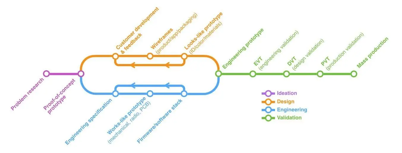 Parallel to the industrial design process, engineering teams work on another set of prototypes to test, iterate, and refine the mechanical, electrical, and thermal systems that make up the product. These works-like prototypes might look different from the final product, but they include the core technologies and functions that need to be developed and tested.